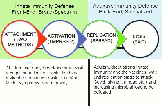 Just as we would study and reverse engineer any enemy weapon, jet, or missile; to see if it offered better or worse capabilities than our own military, we and other researchers worldwide have set about understanding and copying components of a child's Innate Immunity. This is after all where the earliest antibiotic and antiviral drug design originated, with medical researchers copying Innate Immunity. They just were not sophisticate enough to differentiate between child and adult and elderly Innate Immunity. For Covid19, these are critical, life-impacting distinctions.