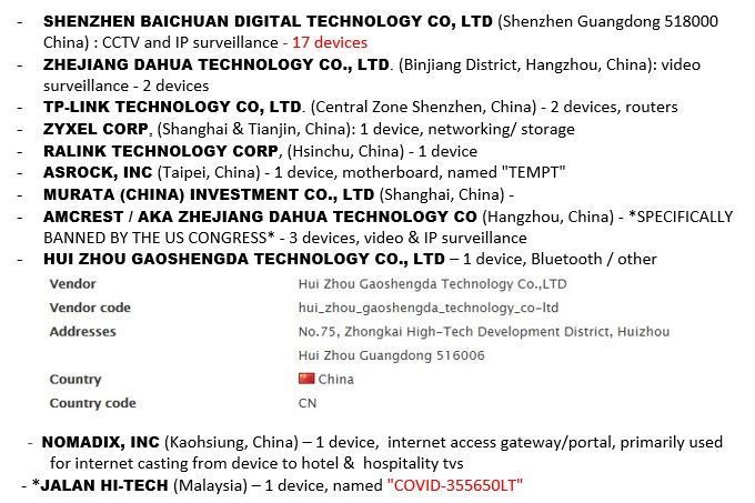 If any US contractor or federal government employee were to show up on a network scan with such devices, they would be fired or suspended, and quite possibly charged with espionage. US DOJ made several such arrests during the pandemic, including a US citizen contractor from Virginia, just across the river from Howard and Argonne's DC location. Chinese cyber and device intrusion is a large problem in the DC metro area due to the high numbers of South American immigrants, and Chinese and Russian aid to that region, often winning the loyalty of those citizens, who then immigrate into the US, with their Chinese devices and loyalty.