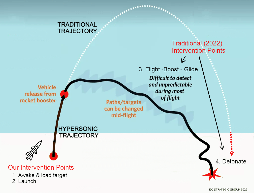 Every existing or planned missile defense system targets only the last two phases: except ours. Since 2017, our CEO has led concept and engineering design for missile & satellite defense.