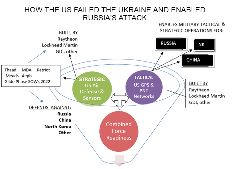 The current crisis in the Ukraine, a humanitarian disaster, is a direct reflection of US large defense contractors putting up sophisticated satellite and space technology for use by our enemies. And Congress funding it eagerly, without question. Our CEO flagged urgently to White House and other leadership, in the weeks leading up to the Russian attacks on the Ukraine, that they would be using our US and European military networks to guide their jets, ships, drones, and missiles.